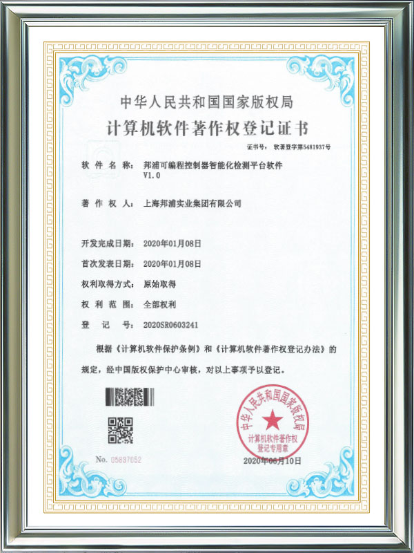 Certificado de registro de obras de software de computador Controlador programável Bangpu Software de plataforma de detecção inteligente
