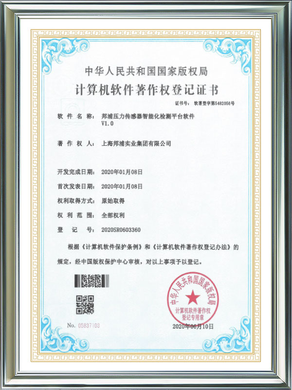 Certificado de registro de trabalho de software de computador Software de plataforma de detecção inteligente de sensor de pressão Bangpu
