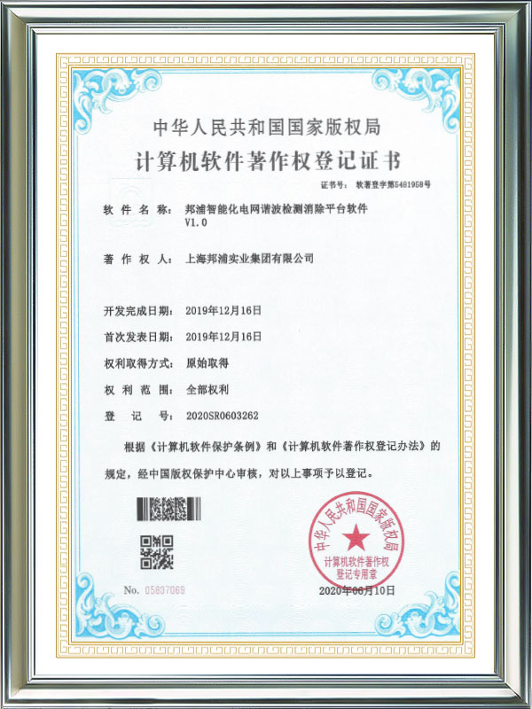 Certificado de registro de obras de software de computador Bangpu City Smart Pump Room Control System Platform Software