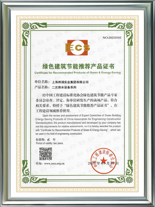 Certificado de Produto Recomendado para Economia de Energia em Edifícios Verdes