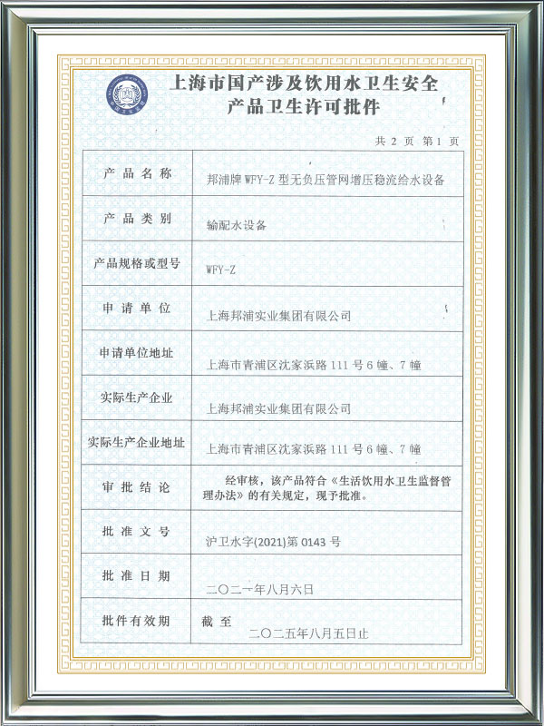 Nenhum equipamento de abastecimento de água de pressão negativa
